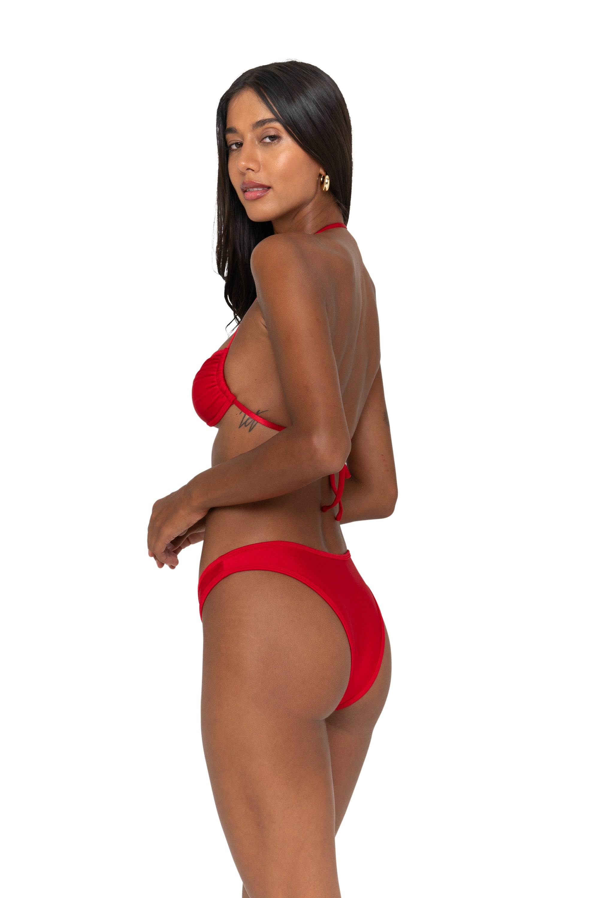 A scooped bralette top with adjustable straps and a versatile fit that can be worn halter or bandeau. Soft, supportive, and versatile. Crafted in the finest quality sustainable Nylon.